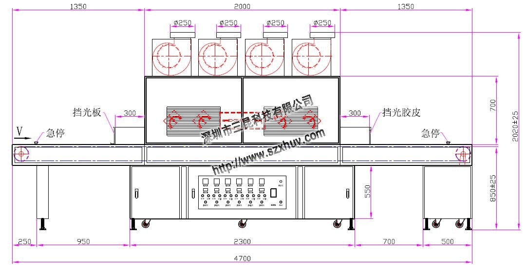 2、UV燈總長(zhǎng):8.0kw:1050mm、3.0kw:400mm